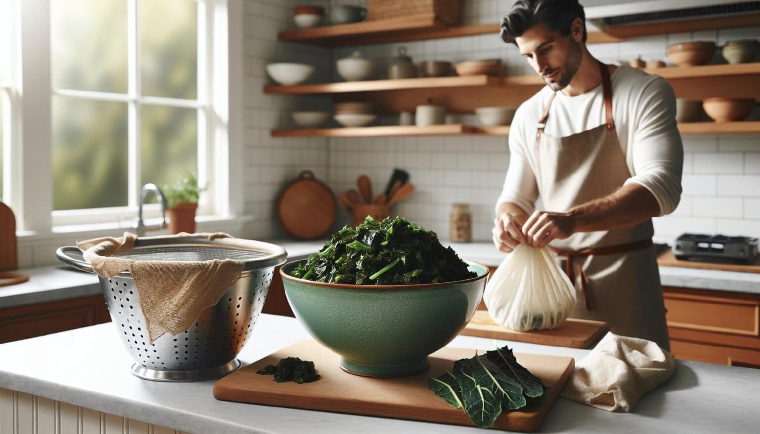 Important: Avoid squeezing or pressing too hard, which damages the greens’ texture. Extra moisture trapped in frozen greens leads to mushiness when thawed. Properly drained greens maintain their structure through the freezing process.