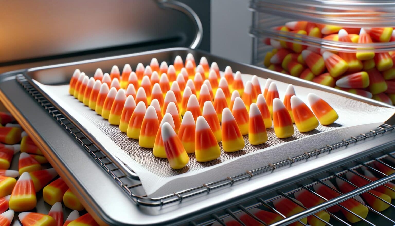 Proper airflow between pieces accelerates the drying process while ensuring uniform results. Line freeze-dryer trays with food-grade parchment paper or silicone mats before arranging candy corn to prevent sticking. Even distribution allows cold air to circulate effectively around each piece during the freezing phase.
