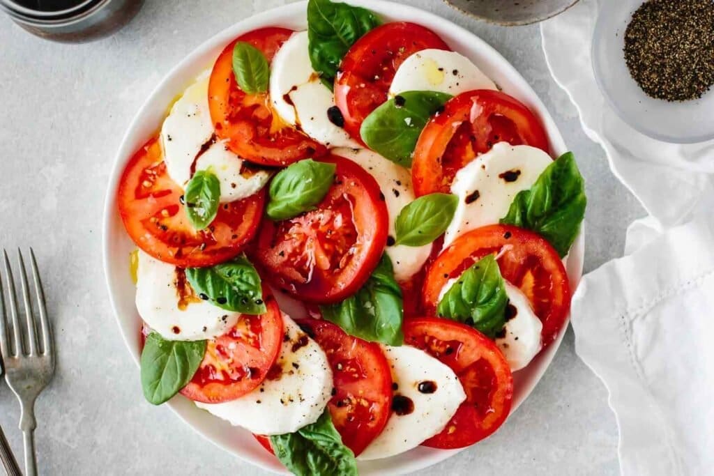 You can think of the Caprese salad as something elegant and also simple, having fresh basil, mozzarella, and sliced tomatoes. Don’t forget that you should include balsamic glaze for the final touch.